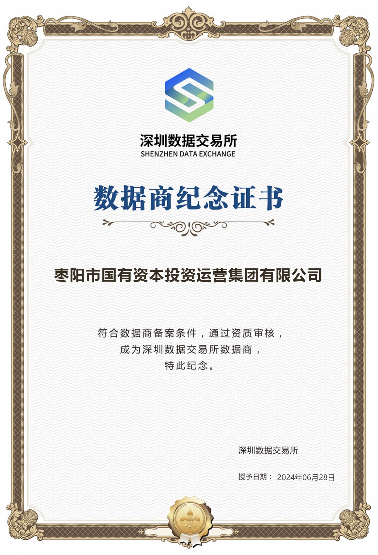 近日,集團榮膺深圳數據交易所頒發(fā)的“數據商紀念證書”,成為襄陽市首批在深圳數據交易所完成認證的數據商。